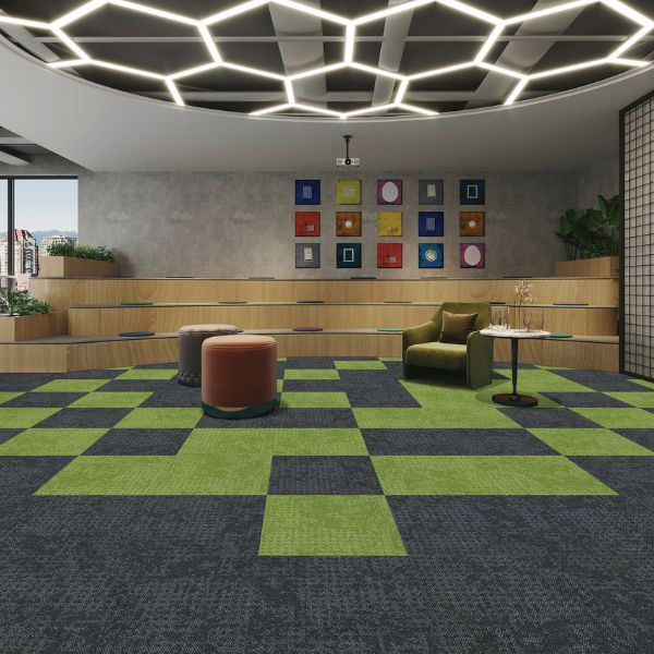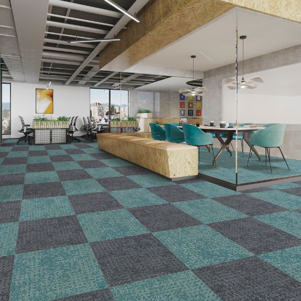 To supply and install 50*50cm solution dye multi level loop pvc backing carpet tile “C5-207B Russian Sage” with water base adhesive